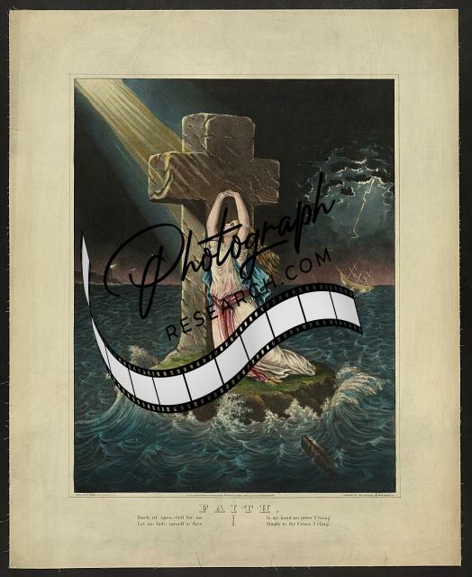Faith,c1871,Cross,Religion,Sun Rays,Ocean,Waves,Ship,Schlegel