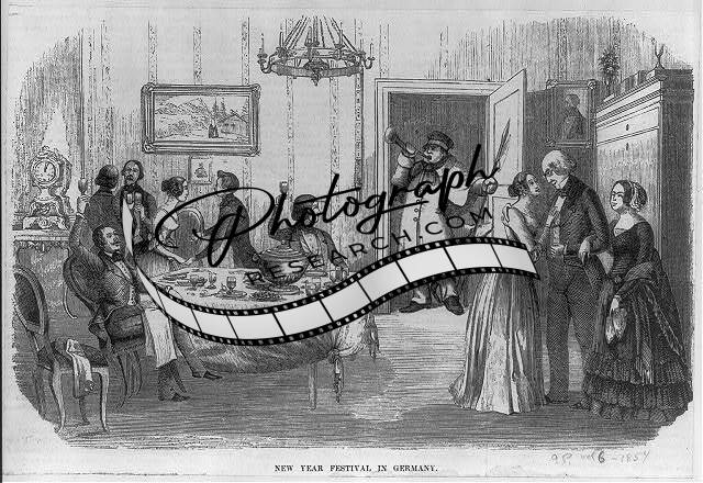 New Year Festival in Germany,Room of people eating and drinking,1854,Gleason's
