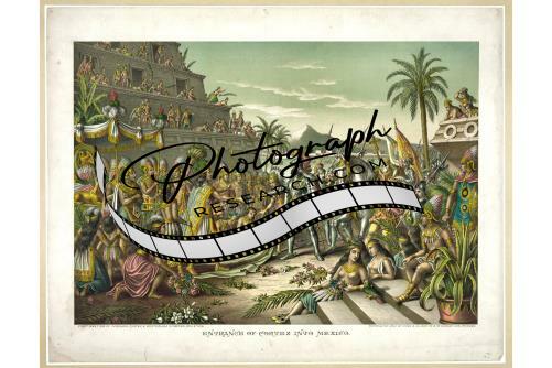 Entrance of Cortez into Mexico,Kurz & Allison,Natives,Palm Trees