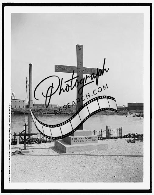 J Marquette,Joliet Cross head,drainage canal,monuments,Chicago,Illinois,IL,c1910