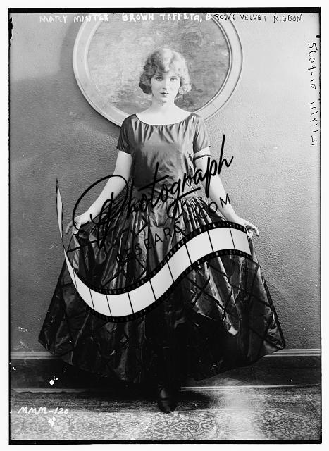Mary Minter,dresses,women,clothing,skirts,actress,brown taffeta,velvet ribbon