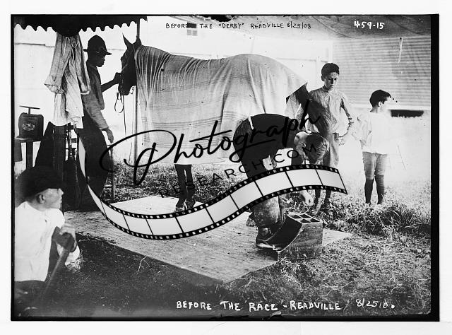Blacksmith shoeing horse before the derby,Readville,Massachusetts,MA,1908