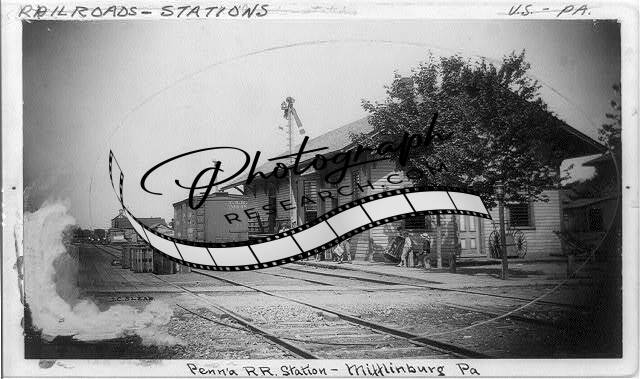 Pennsylvania Railroad Station,buildings,tracks,cars,crowds,Mifflinburg,PA,c1890