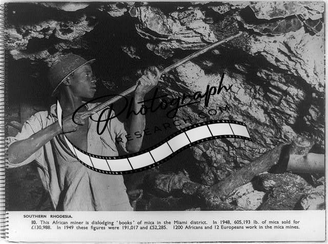 African miner,dislodge books,mica,Miami district,Southern Rhodesia,Zimbabwe,1950