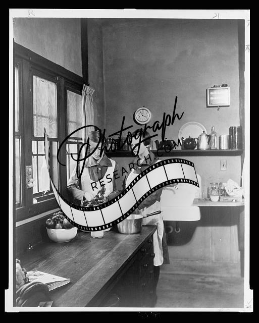 Girl Scout Little House, two Girl Scouts prepare salad in kitchen