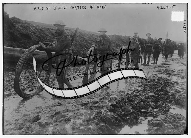 British wiring men in rain,Military,soldiers,Bain News Service,muddy