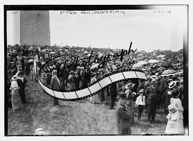Field Mass,Washington,May 17,1914,crowd gathered,umbrellas 1