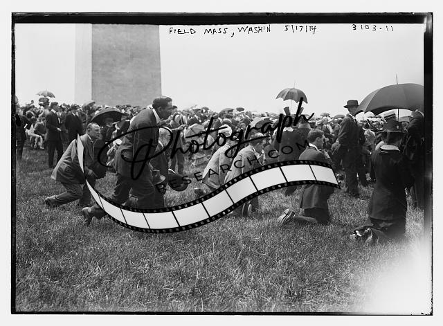 Field Mass,Washington,May 17,1914,crowd gathered,umbrellas