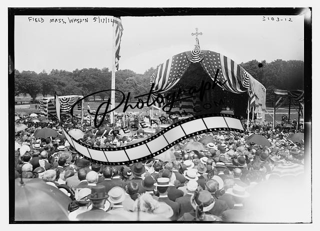 Field Mass,Washington,May 17,1914,crowd gathered,umbrellas