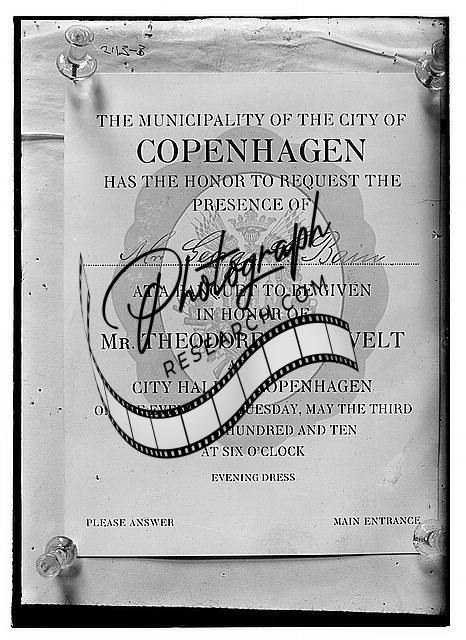 Photo of Invitation for George Bain,Copenhagen,Banquet,Theodore Roosevelt