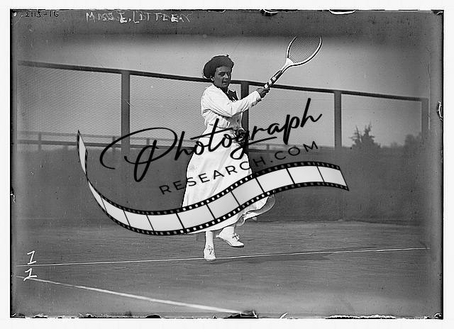 Miss E. Little playing tennis,dress,Bain News Service