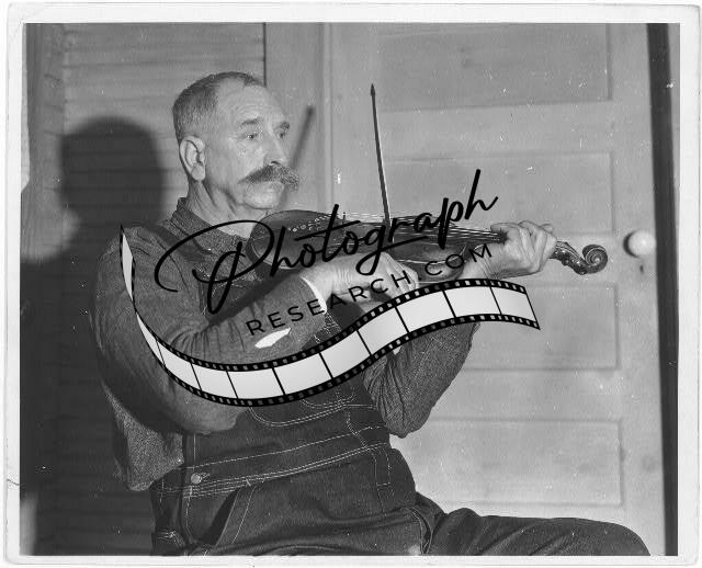 Crockett Ward playing Fiddle,Galax,Virginia,VA,1937,Musician,wearing overalls