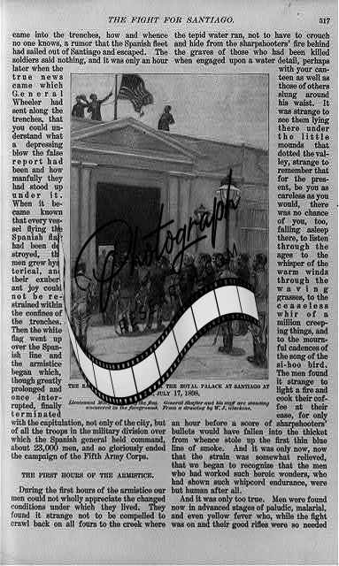Fight for Santiago,raising flag over Royal Palace at noon,July 17,1898,Lt. Miley