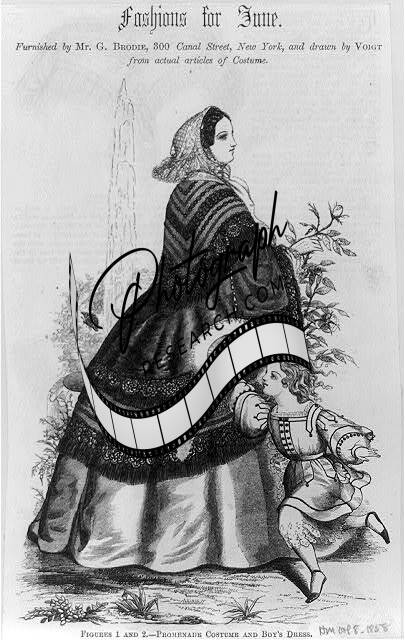 Figure 2-Promenade dress,1860,woman wearing full length dress,parasol,fashion