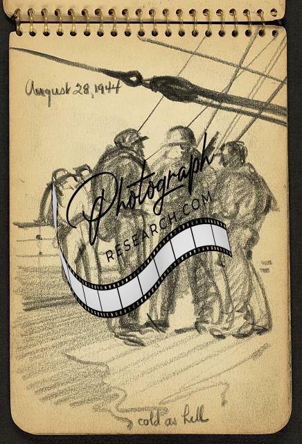 Cold as hell,soldiers,deck,ship,ocean travel,military,Europe,Victor A Lundy,1944
