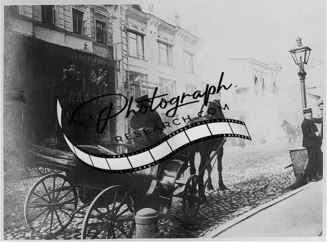 Russia,ca. 1920,Carriage on street,Frank G Carpenter,lamp post,store fronts