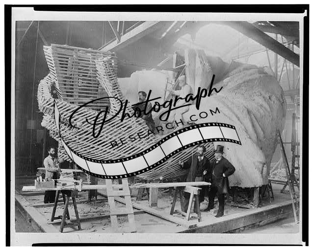 [[Construction of the skeleton and plaster surface of the left arm and hand of the Statue of Liberty, at the Gaget, Gauthier & Co. workshop in Paris, 1881-1883]]