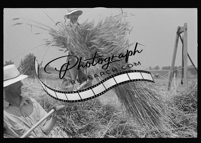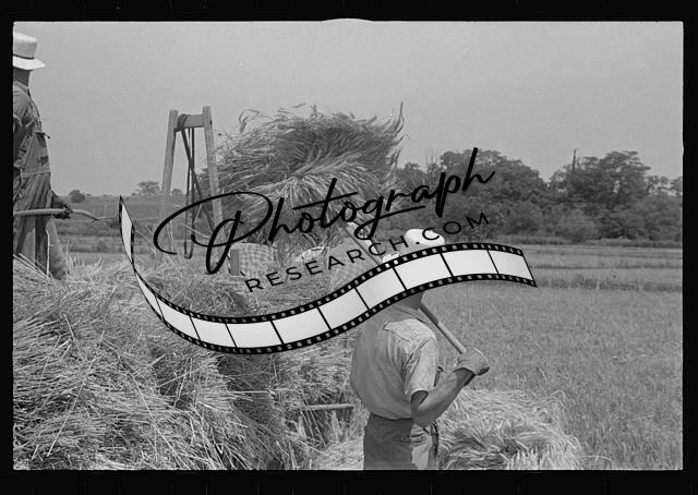 Loading bundles of wheat for hauling to thresher,central Ohio,OH,Farm Life,2