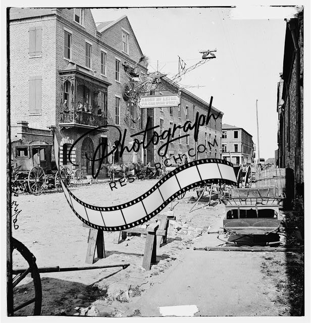 Fire-scarred Mills House,Hibernian Hall,hotels,Charleston,South Carolina,SC,1865