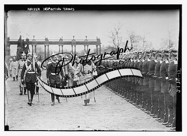 Kaiser inspecting troops,soldiers,in formation,uniform,Bain News Service