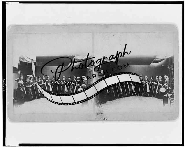 Women standing in semi-circle,formally dressed,brooms,symbol of protest,c1873