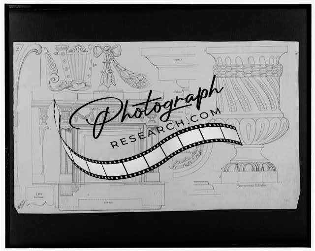 Fireplace mantel,Elevations,plan,sections,full size details,vase,JG Bruff,1880