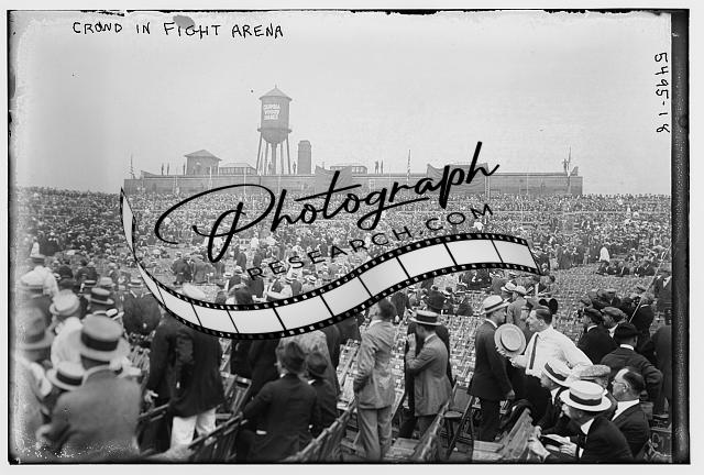 Crowd,fight arena,entertainment,spectators,water tower,seats,Bain News Service