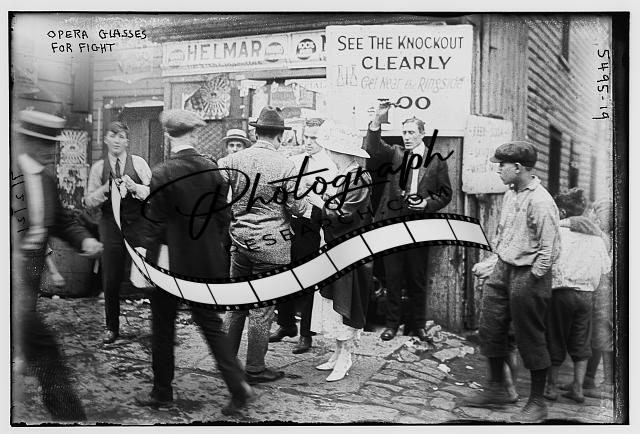 On sale,opera glasses,fight,vendors,signs,buildings,streets,Bain News Service
