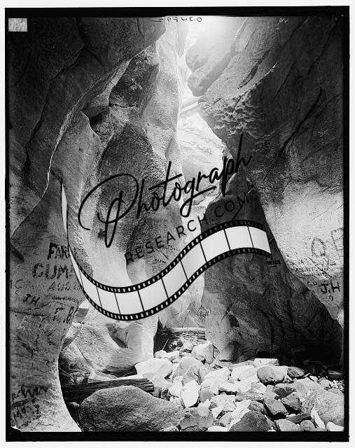 Looking down under Natural Bridge,graffiti,rock formations,North Adams,MA,1900