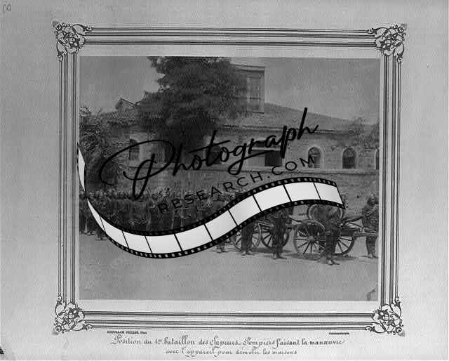Title: [Preparations for the drill of the First Battalion of the Fire Brigade with hooked ladders] / Abdullah Frères, Phot., Constantinople.