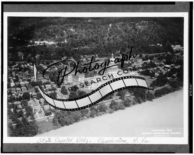 West Virginia,Charleston,State Capitol building,dwellings,trees,roads,hill,c1934