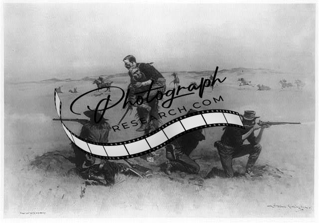 The Last Stand,George Custer,soldiers shooting at Indians,Wounded Soldier,c1907