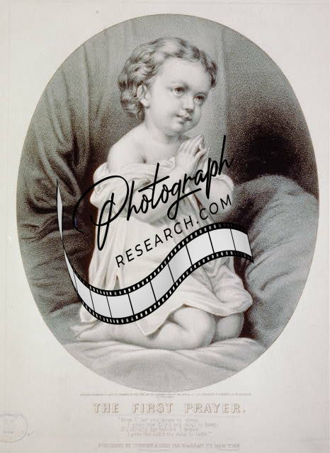 First prayer,c1870,Currier & Ives,Photograph,Child praying on knees