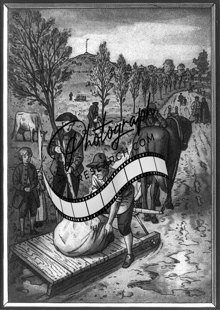 Title: The First public coach or hack used in Boston was set up in 1712 near the head of Hanover Street at the sign of the Orange Tree by Jonathan Wardell, proprietor of that tavern