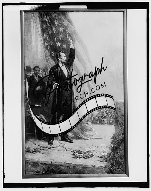 Abraham Lincoln raising flag,speaking,crowd,Jean Ferris,Detroit Publishing,1900