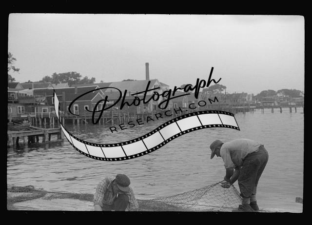 Fishermen repairing nets,Provincetown,Massachusetts,MA,Barnstable County,1940,7