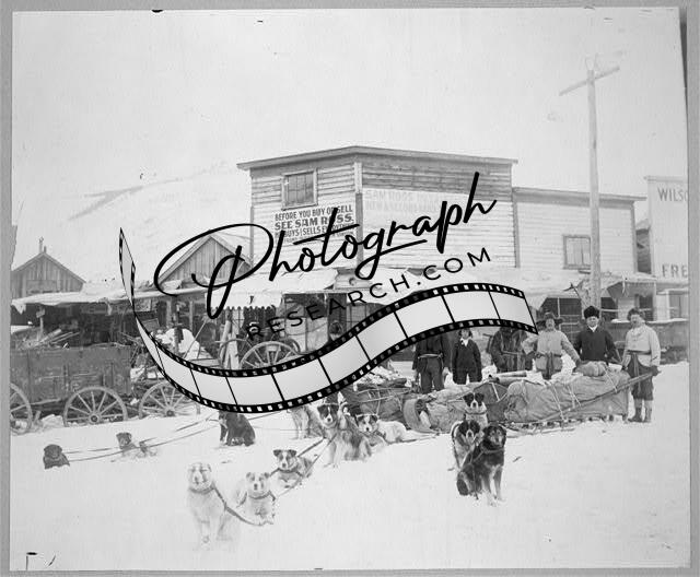 Jim Haly & his squaw,Haly's Roadhouse,Yukon River,Alaska,AK,Log Building,Dogs