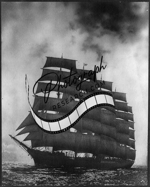Five Mast Full Ship PREUSSEN,c1934,water,clouds,sailing