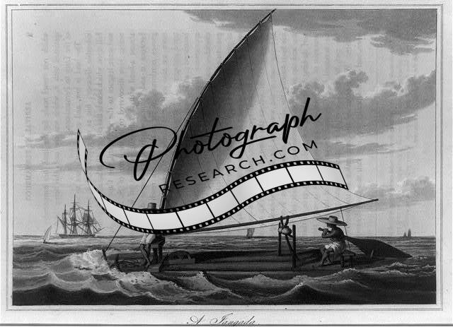 Jangada,two men sailing,catamaran-like,raft,water transportation,Brazil,1816