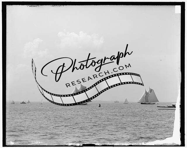 Fishing smacks,start,First Fishermen's race,yachts,Massachusetts Bay,MA,1907