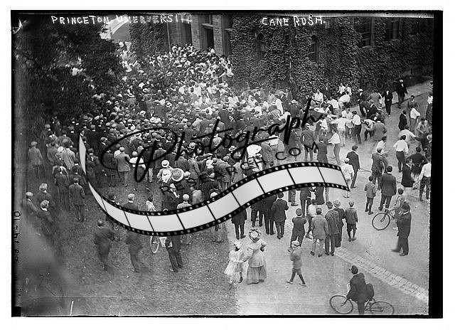 Princeton University Cane Rush,crowd of people,bicycles,outside,Bain News