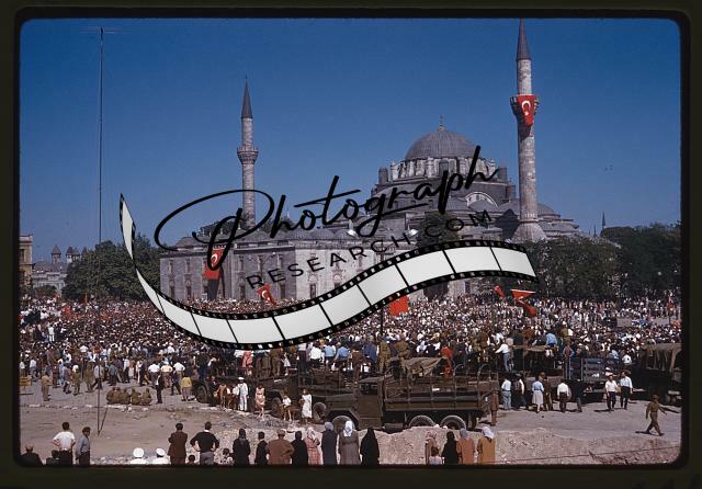Revolution,demonstrations,coup d'état,mosques,crowd,Bayezit Square,Istanbul,1960