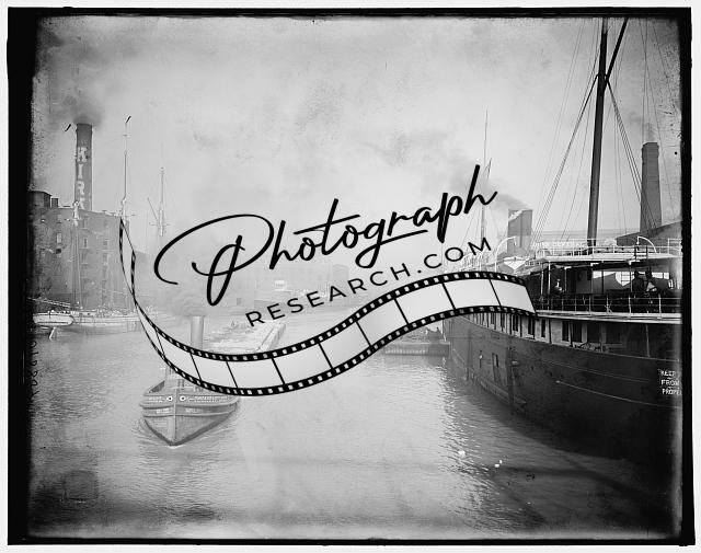 Chicago River east,Rush Street Bridge,tugboats,buildings,ships,Illinois,IL,1905