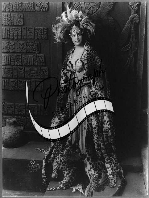 Geraldine Farrar,wearing leopard skin robe,feather headdress,September 10,c1917
