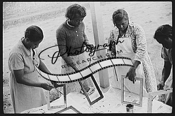 Title: Home economics and home management class for adults under supervision of Evelyn M. Driver. Everything they make, including the hand looms, utilizes materials of local origin such as bamboo, cane, cornshucks, flour and meal and feed sacks, etc. Flint River Farms, Georgia