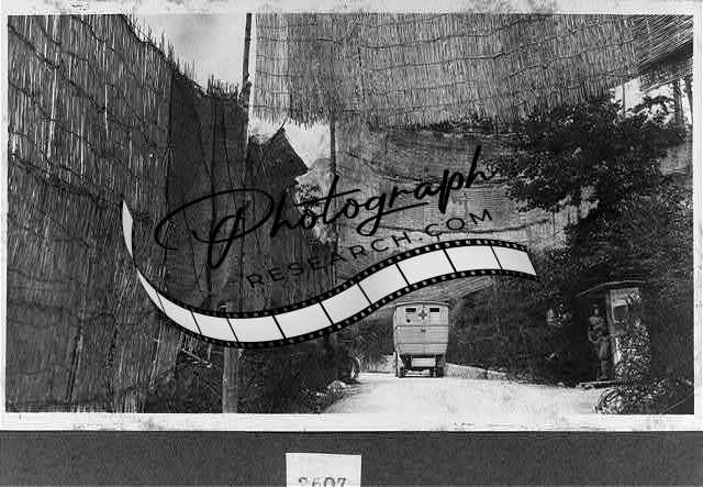 A.R.C. ambulance travelling camouflaged road,Front,Italy,American Red Cross,1914