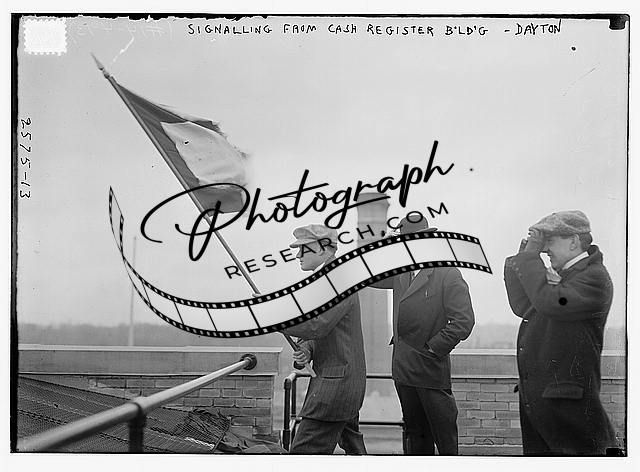 Signalling from cash register building,Great Dayton Flood of March,1913,flag,men