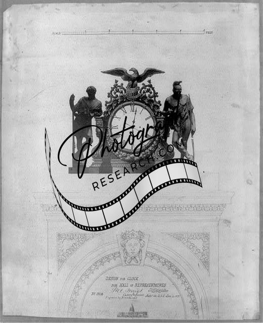 Design,clock for Hall of Representatives,US Capitol,1852-1860,photo of drawing