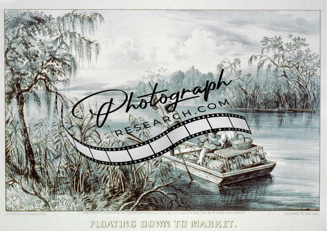 Floating down to market,c1870,boat,river,Currier & Ives,photograph