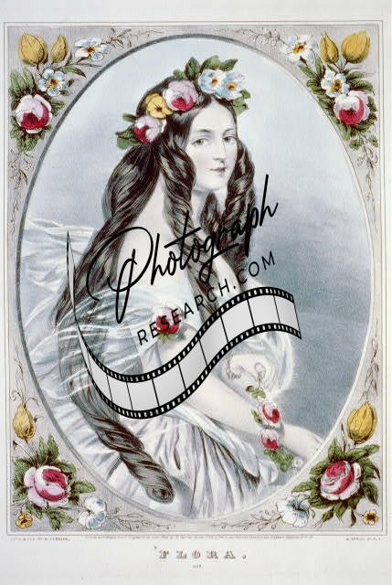 Flora,c1846,Currier & Ives,Photograph,Beautiful Woman,flowers,white dress
